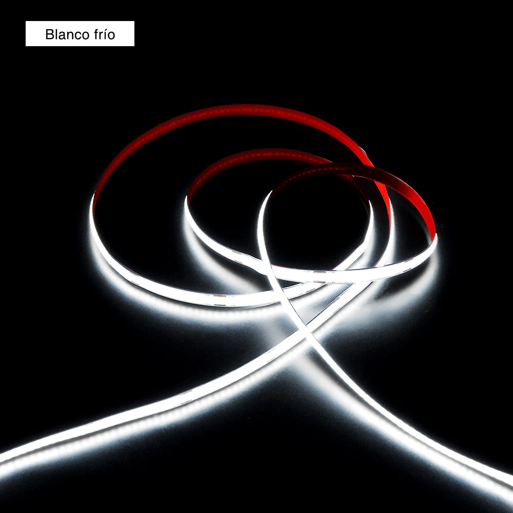 Tira de luces COB de alto rendimiento y colores intensos. Puede usarse para clubs, joyería, vitrinas iluminadas o para decorar muebles como los bordes de los espejos en el hogar, mesa de maquillaje, closet, librero, el borde de la pantalla de TV entre muchas otras aplicaciones. Tiene una gran calidad en su manufactura, pues está protegida por una doble capa de PCB que hace a la tira COB más durable.